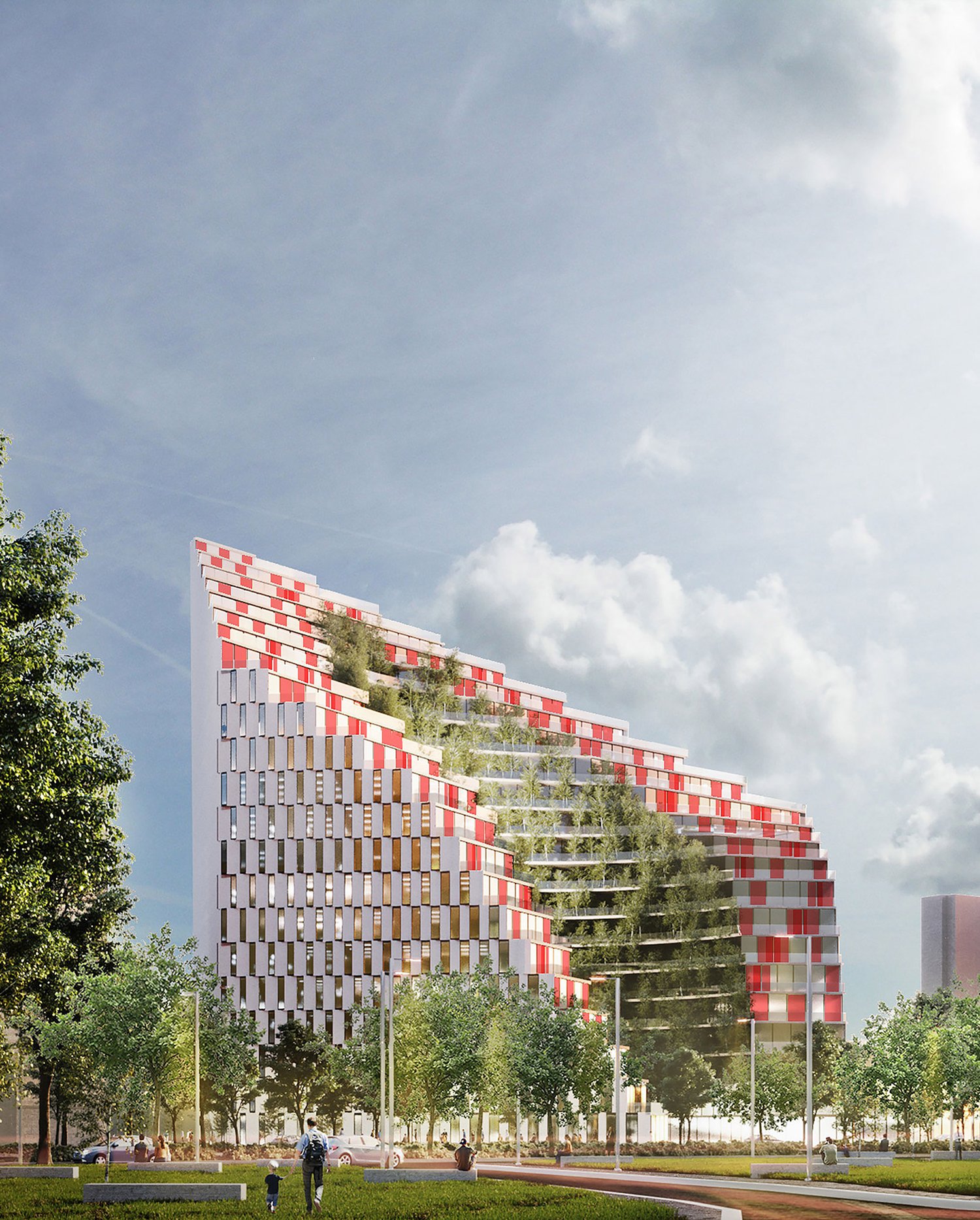 The building is defined by inward-facing balconies, terraced greenery, and an integrated shading strategy. Designed with sustainability at its core, the development enhances comfort for residents and visitors while supporting lower energy consumption and a stronger relationship between architecture and nature.